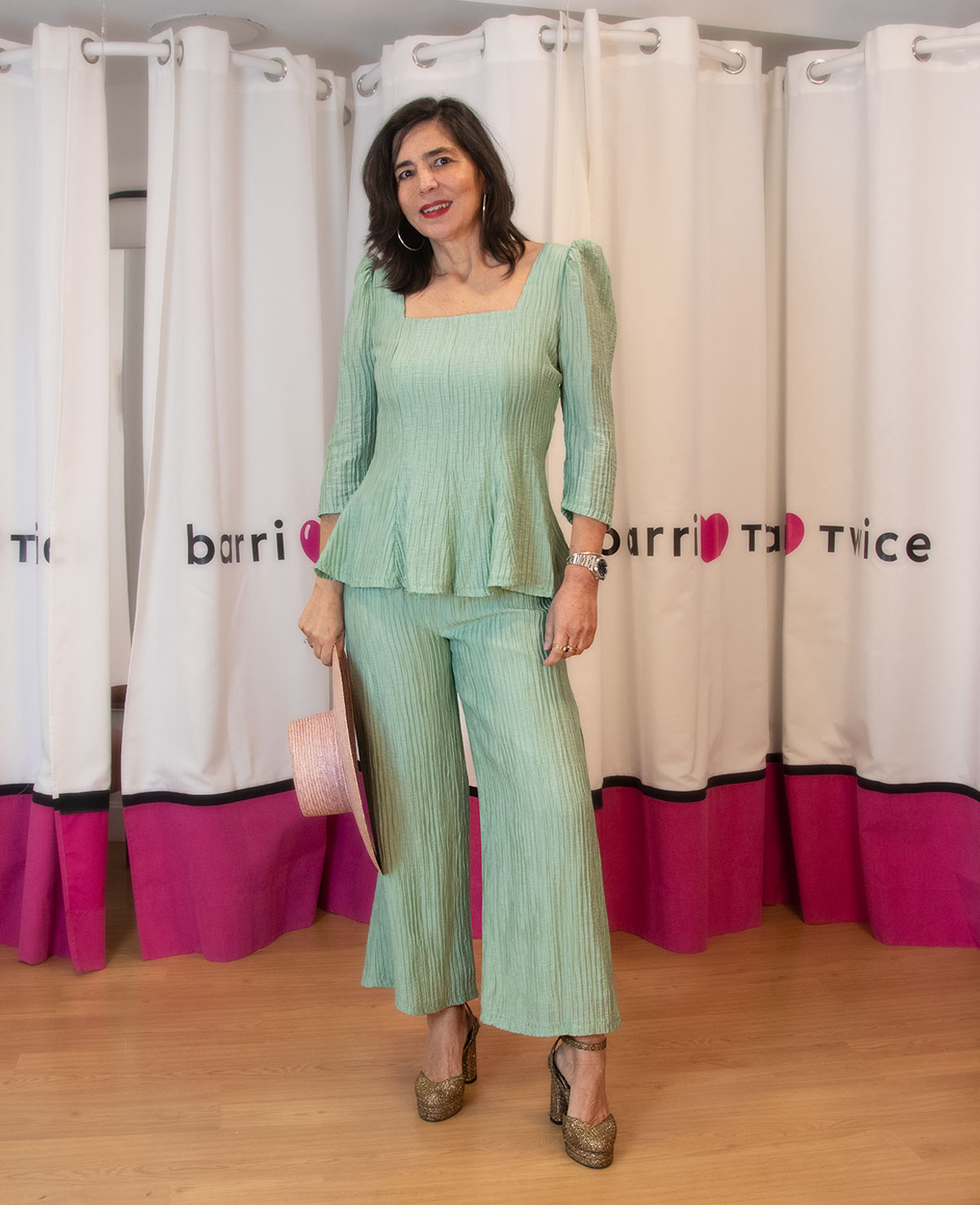 Conjunto de fiesta en tejido semi plisado. Ideal para invitad a boda de mañana y fiesta.