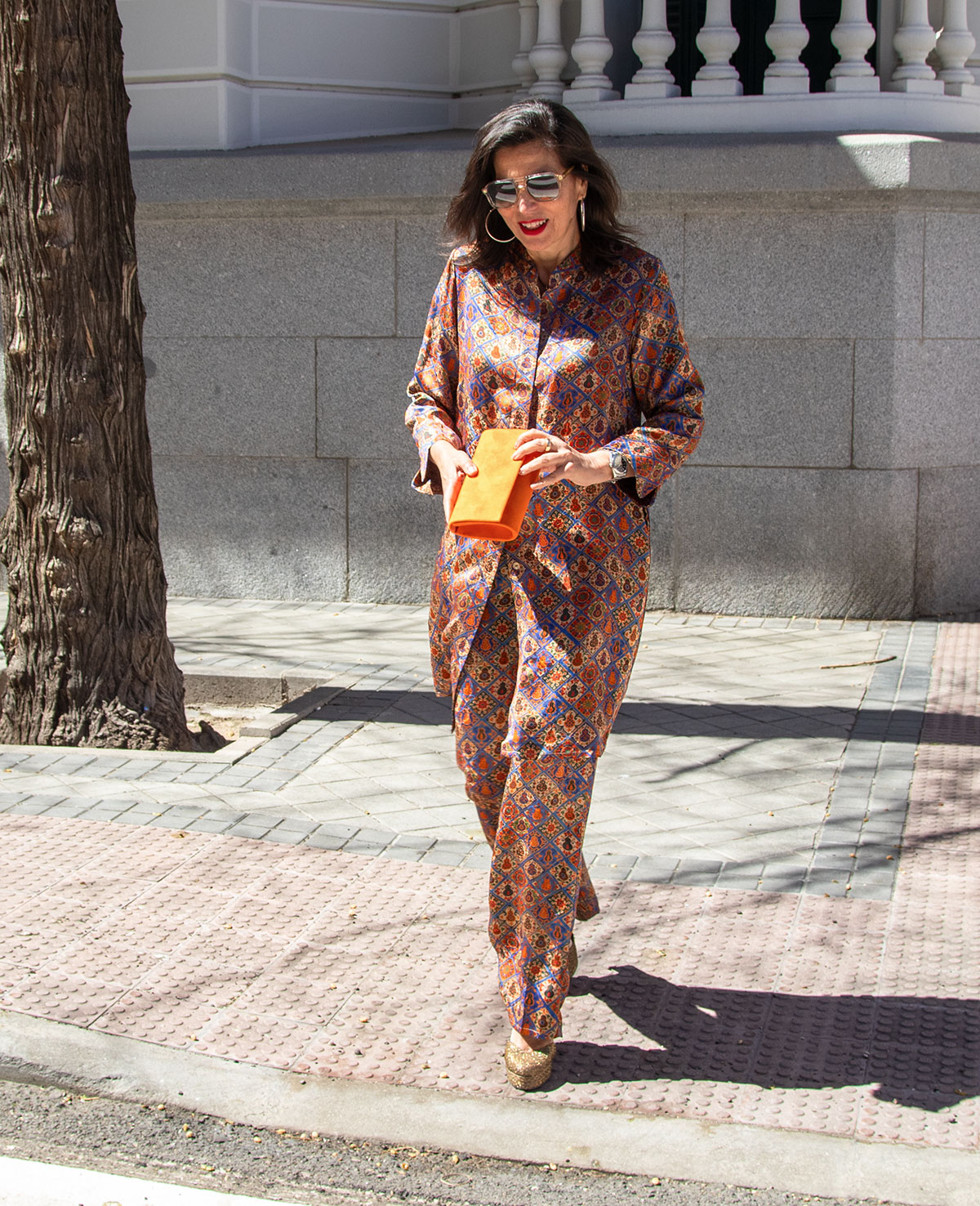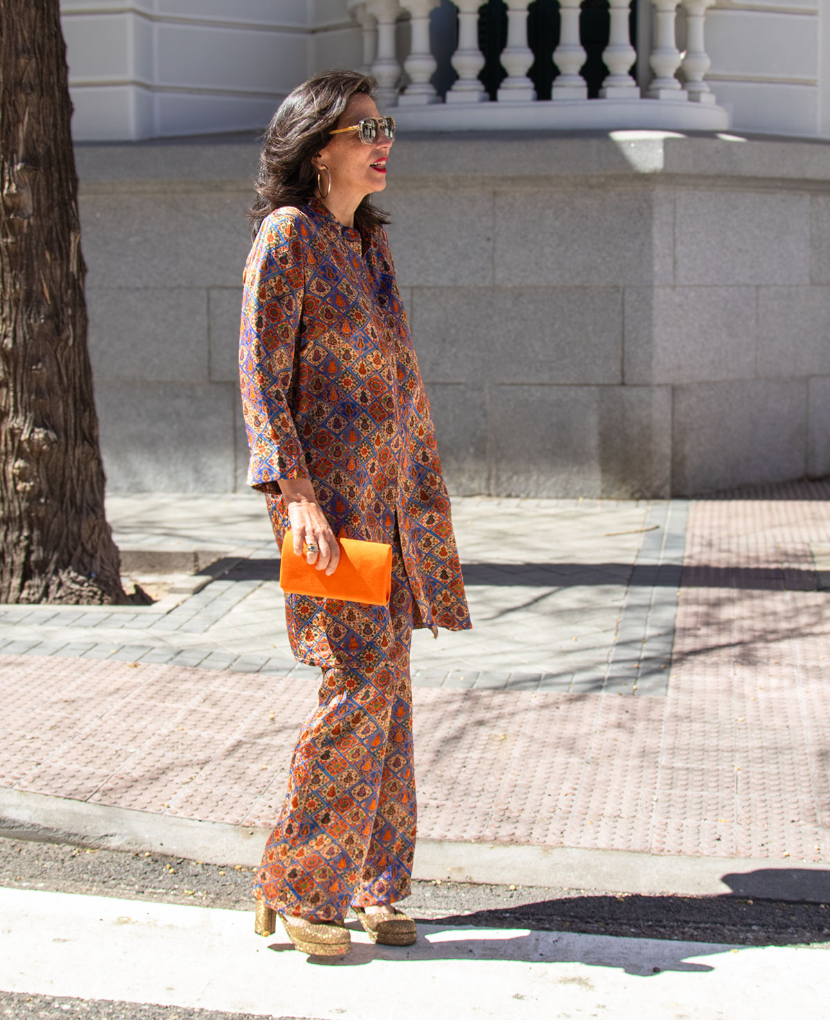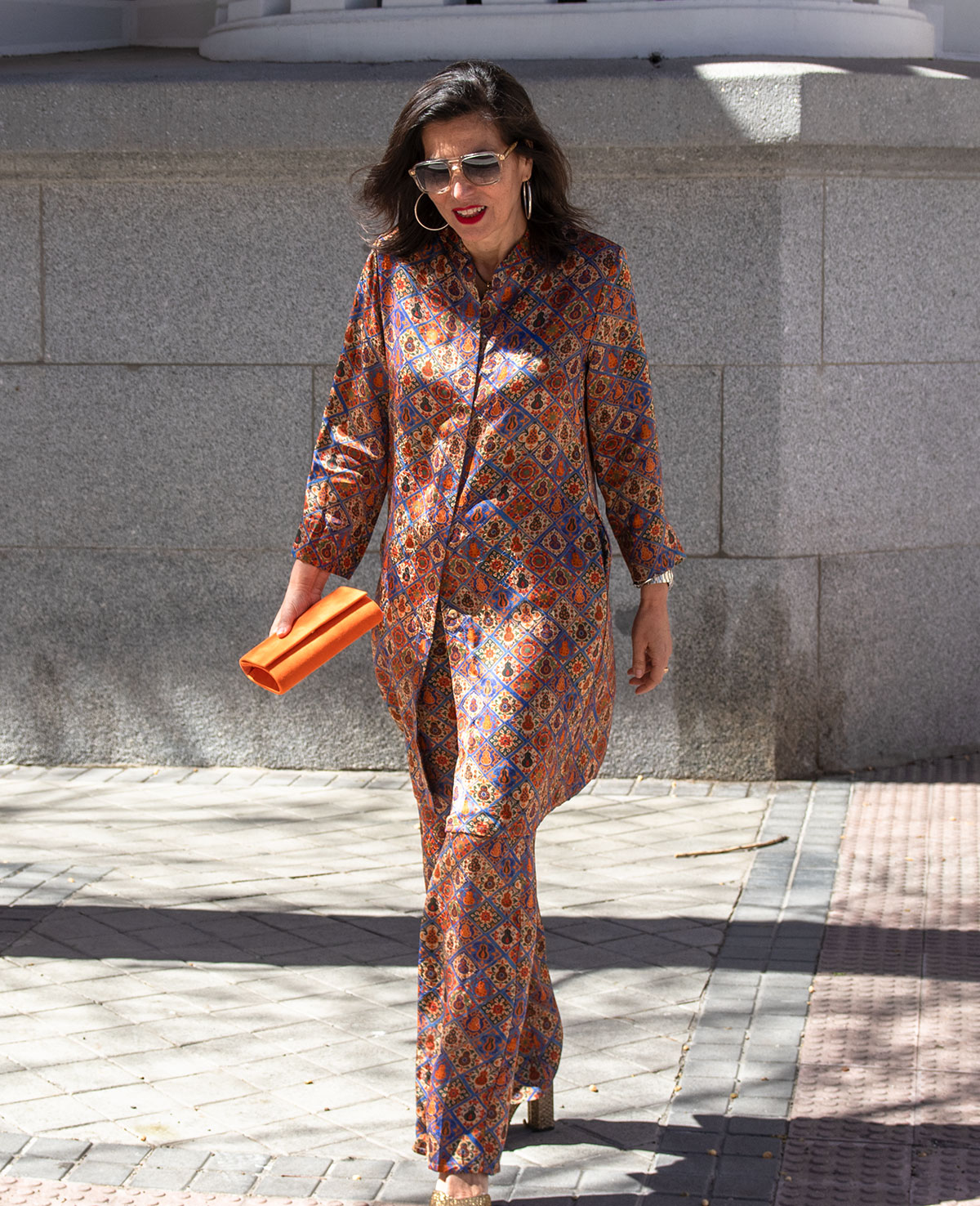 Pantalón recto con cinturilla elástica. Se puede combinar con el guardapolvos Elvia. Ideal para invitadas a boda o fiesta.