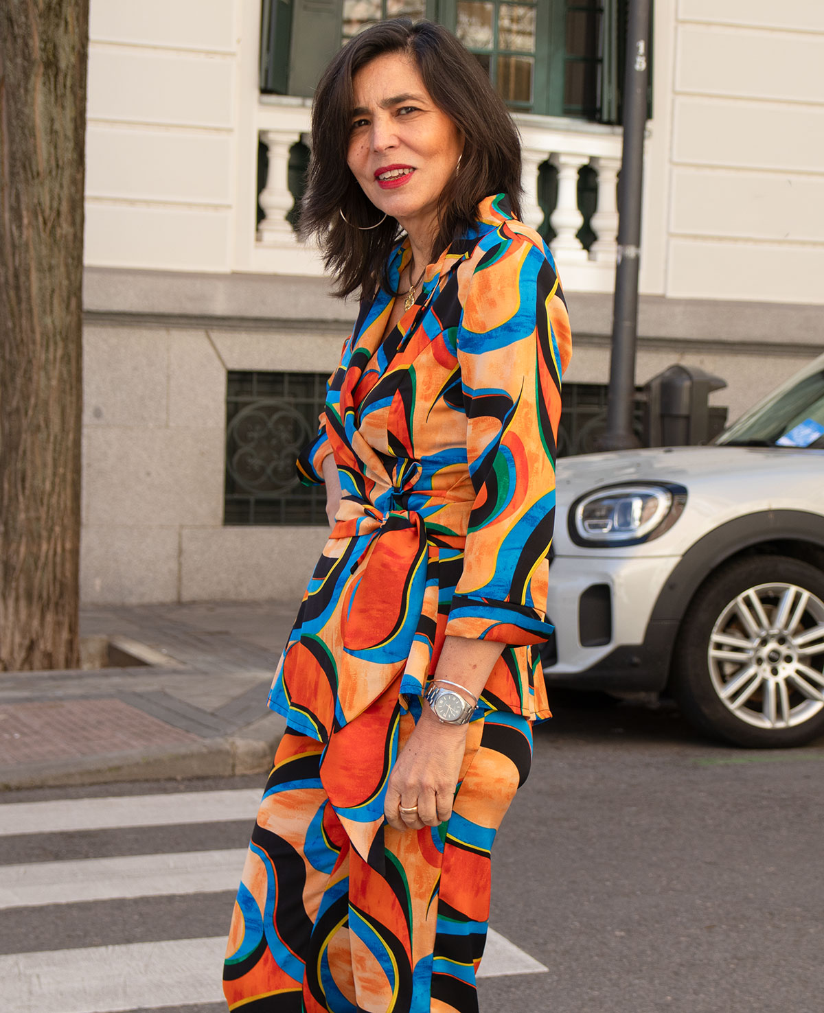 Camisa con manga francesa, solapas y banda a la cintura. Se puede combinar con el pantalón Florencia. Perfecto para ocasiones especiales.