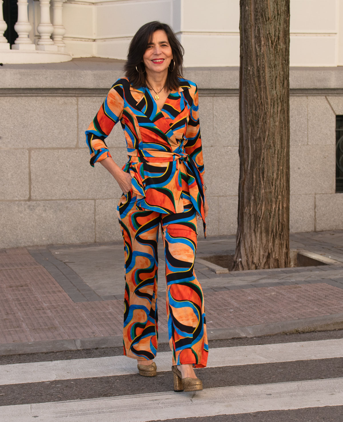 Pantalón recto con cinturilla elástica y bolsillos laterales. Se puede combinar con la blusa Florencia. Perfecto para ocasiones especiales.