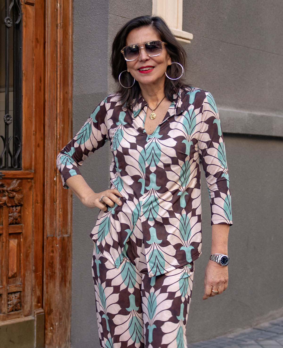 Top de punto con cuello camisero, manga francesa y abertura delantera Se puede combinar con el pantalón Kalia. Ideal para el día a día y ocasiones especiales.