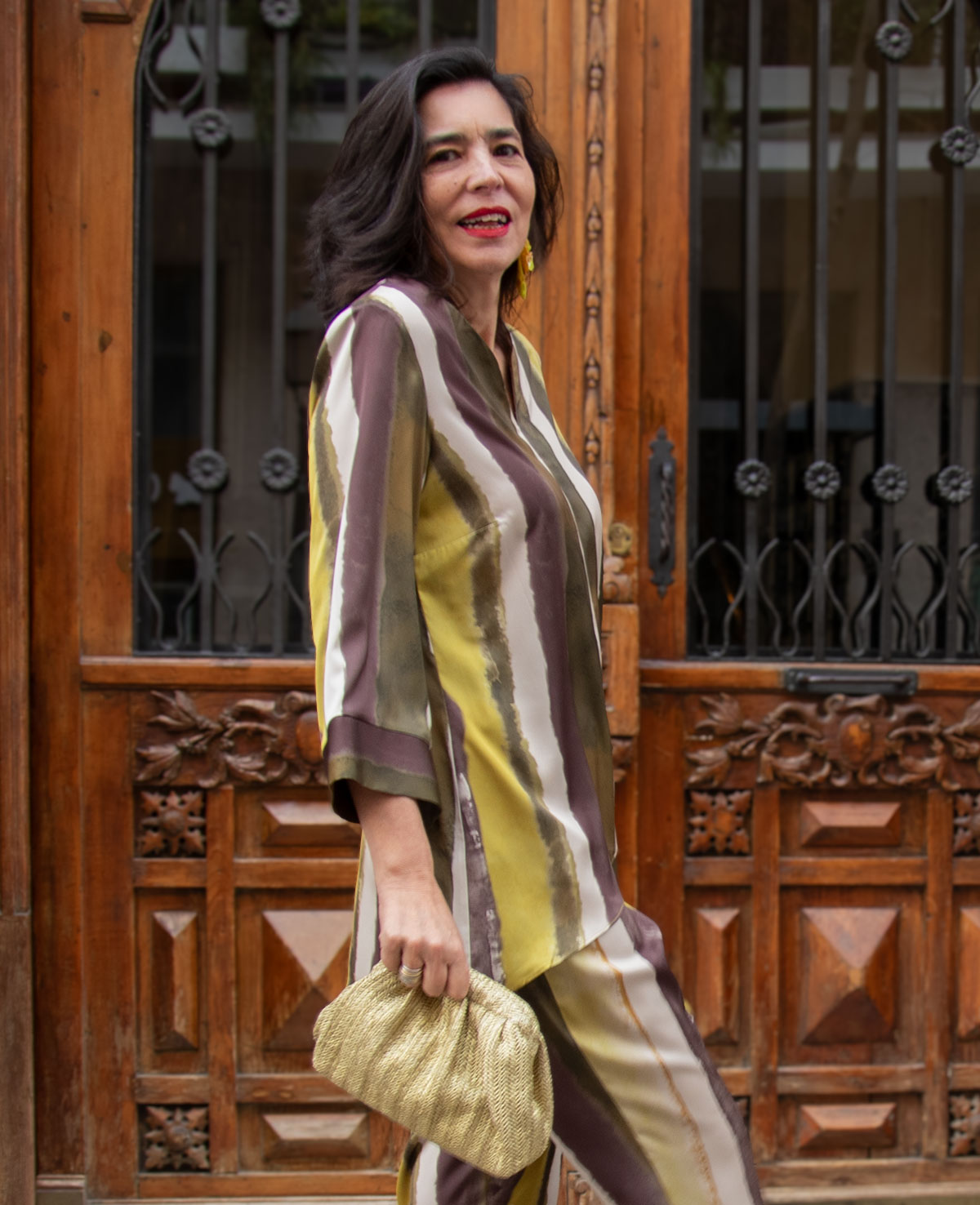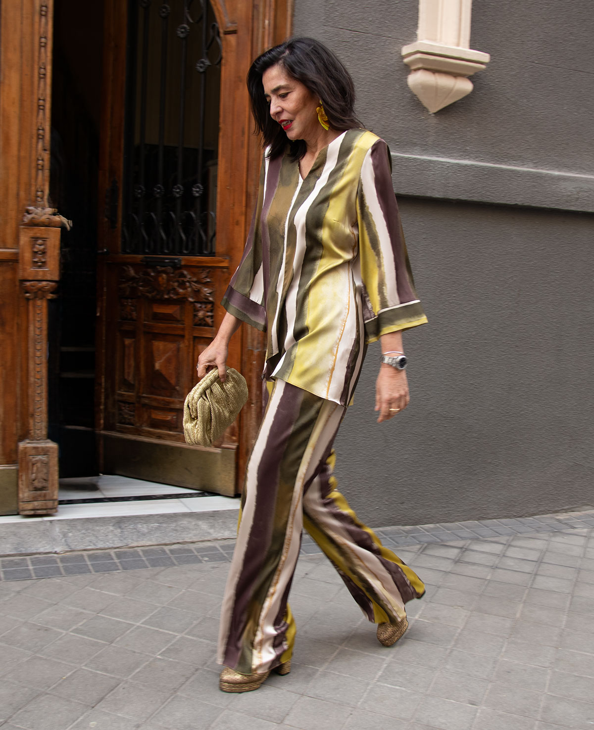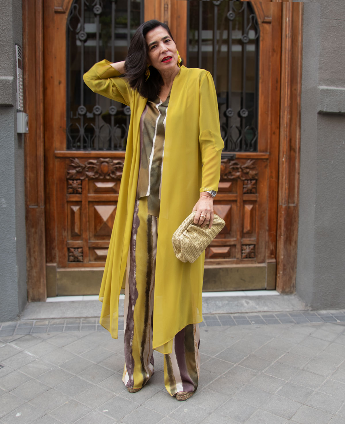Conjunto de top con bajo asimétrico y pantalón recto. Perfecto para invitada a boda o fiesta.
