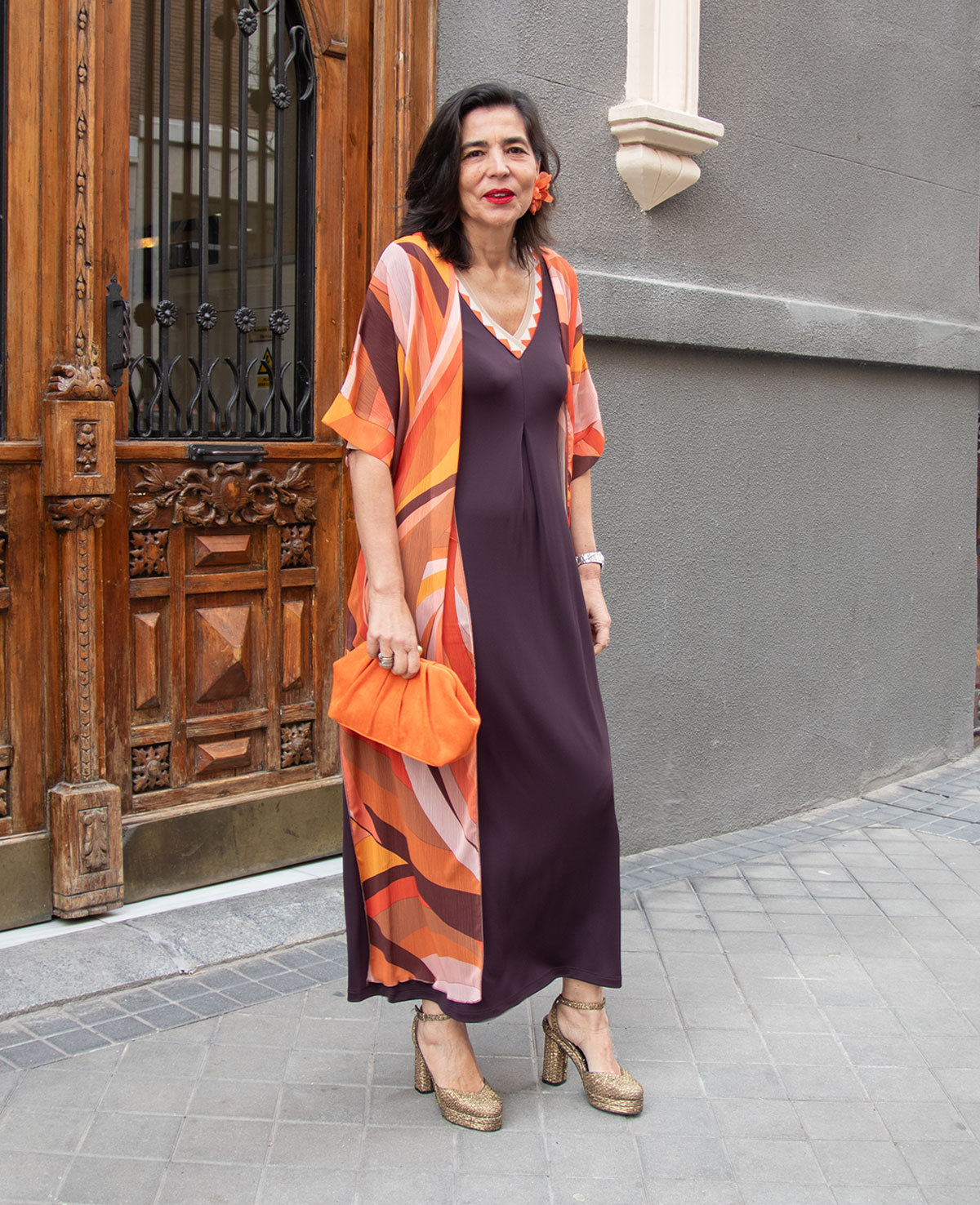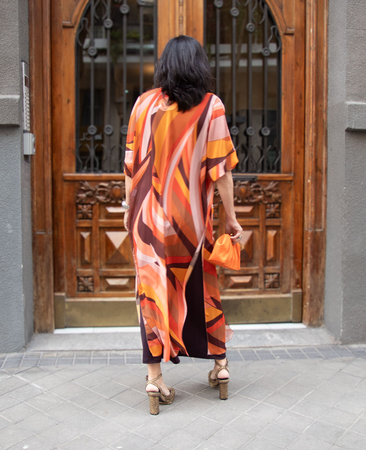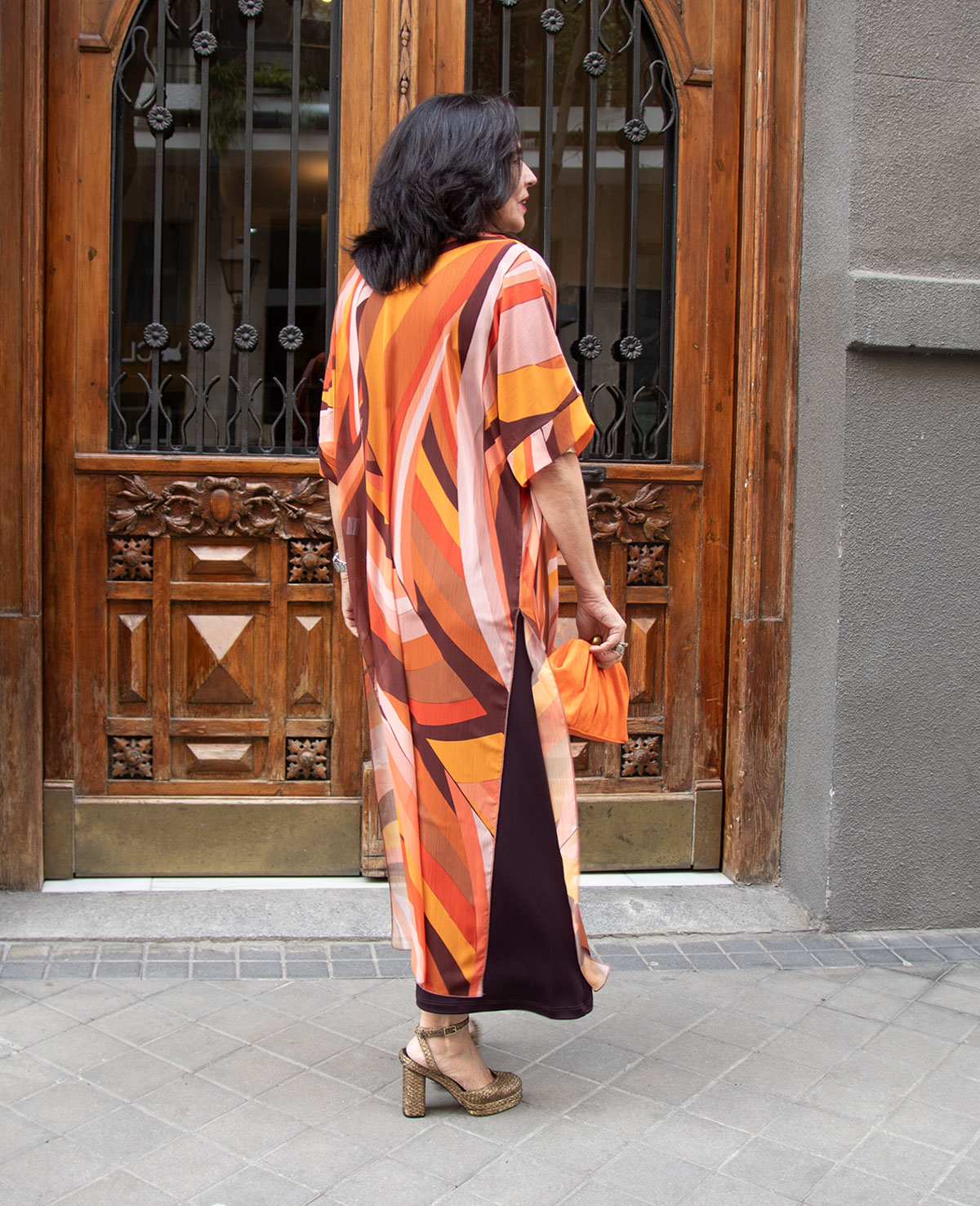 Guardapolvos en gasa estampada. Manga al coda y aberturas laterales. Ideal para look de fiesta o invitada a boda.