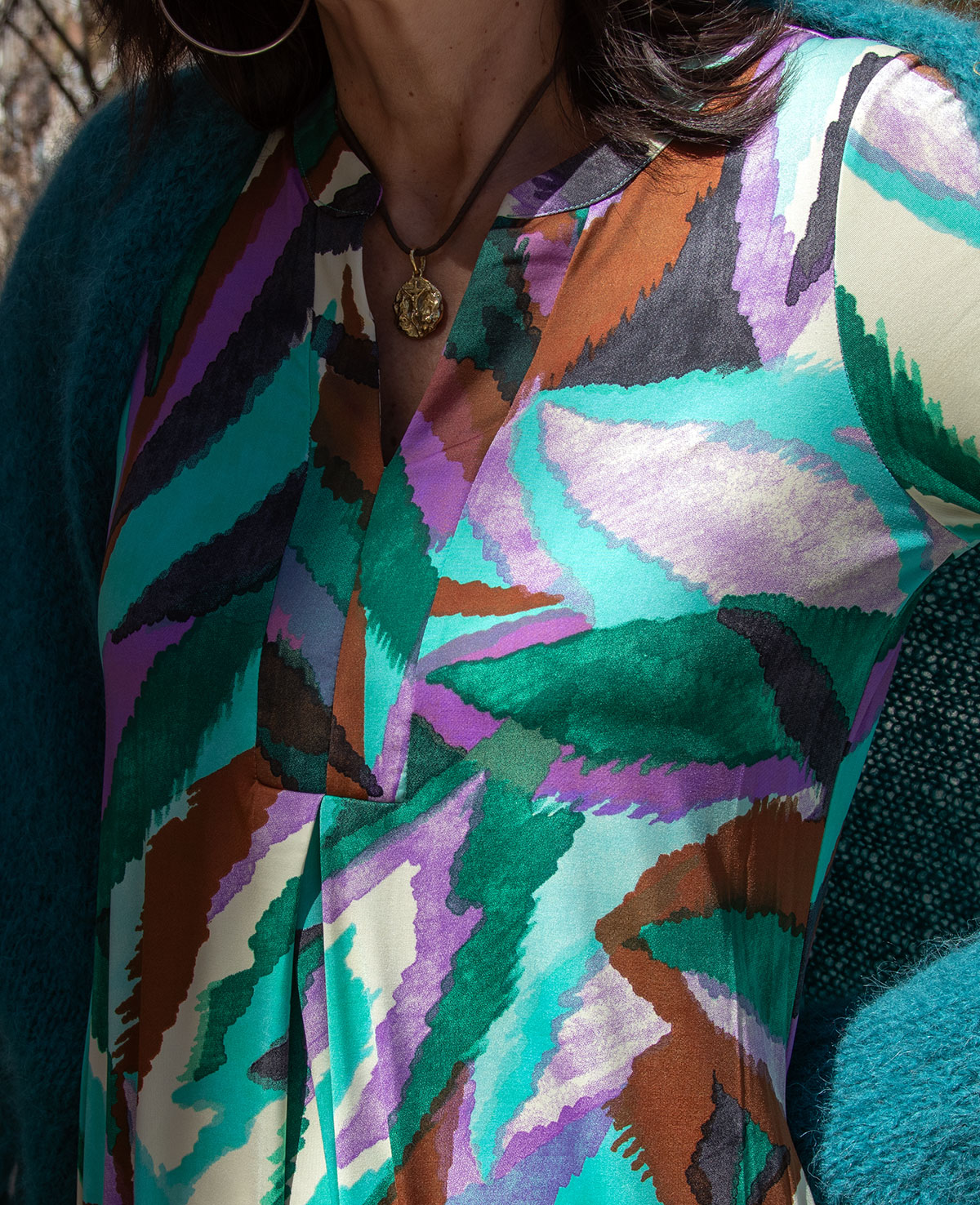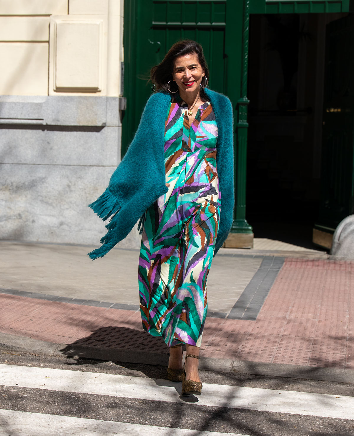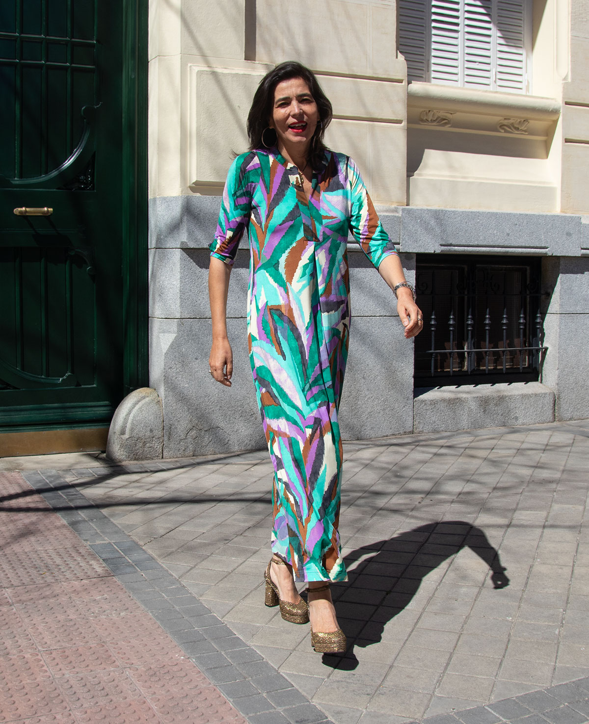 Vestido midi en punto fino con manga francesa, adorno en escote y pliegue delantero. Perfecto para el día a día y ocasiones especiales.