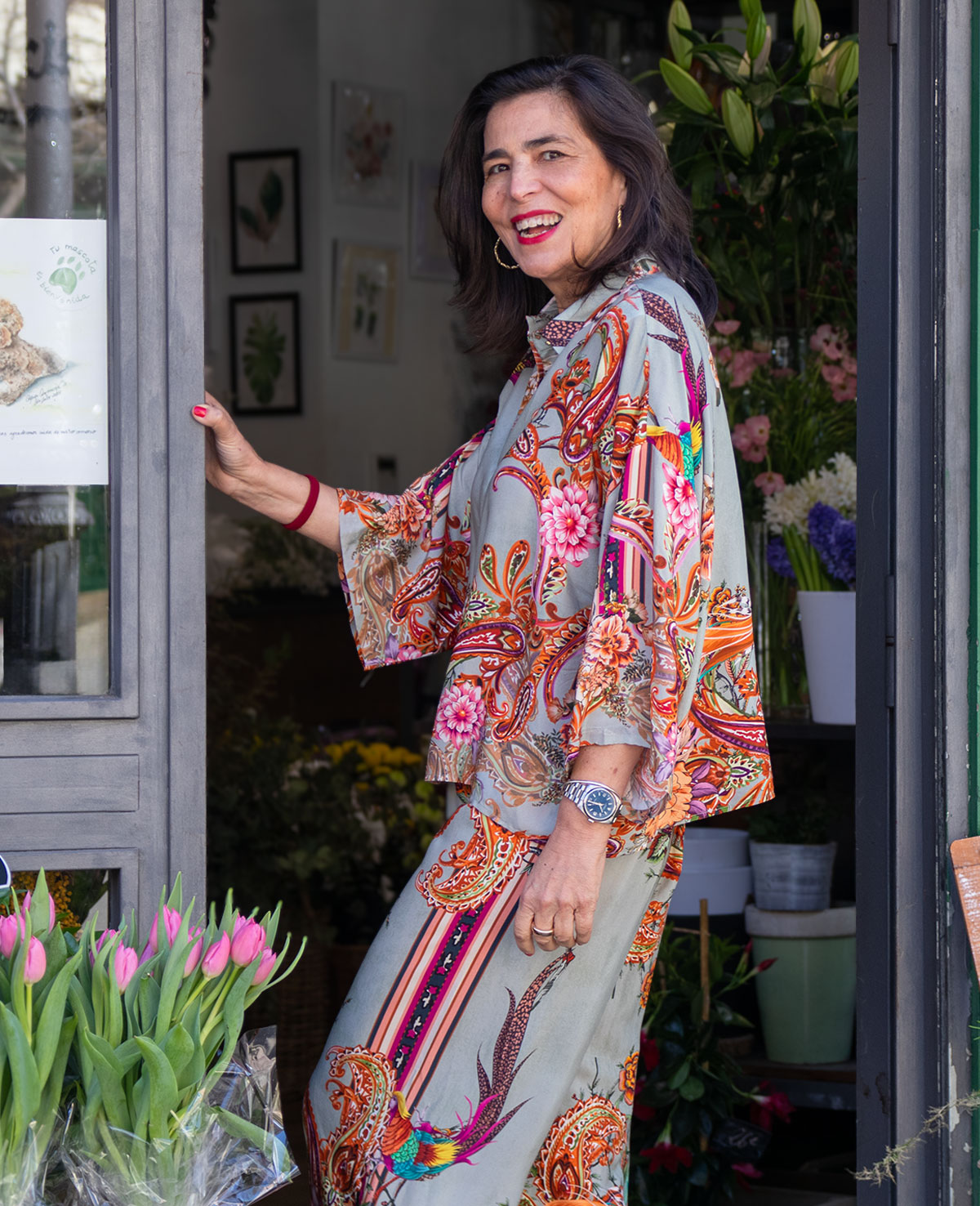 Camisa suelta con manga francesa y cierre de botones. Se puede combinar con el pantalón Zaida. Ideal para ocasiones especiales y el día a día.
